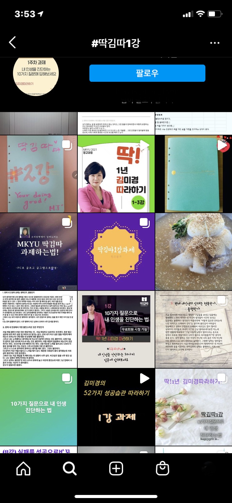 과제를 인스타로 내다보니, 인스타 아이디를 하나 새로 팠었는데, MKYU를 듣는 사람들이 서로 팔로잉 하면서 소통을 많이 하게 된다. 그 분들의 피드를 보면서 세상에 이렇게 열심히 사는 사람이 많은데, 나도 열심히 해봐야겠다라고 생각도 많이 들면서 반성하게 된다.