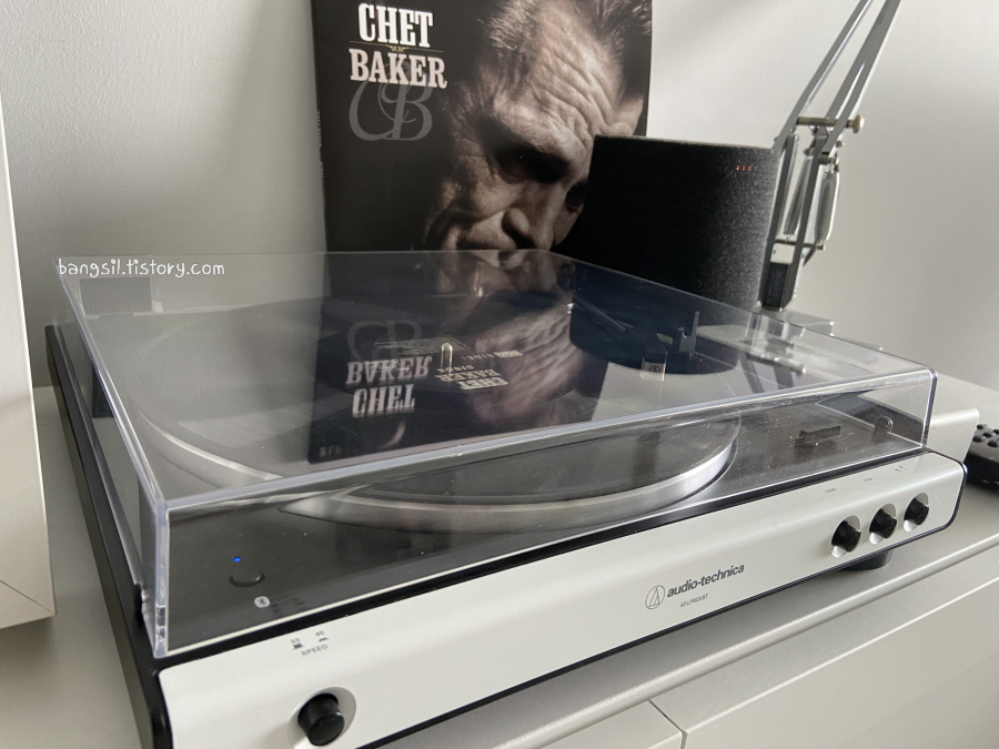 LP 커버도 쳇 베이커가 너무 큼직하게 있는 사진이라 더욱 분위기가 있었어요. 연결한 스피커는 Harman Kardon의 Citation One 블루투스였을 거예요.