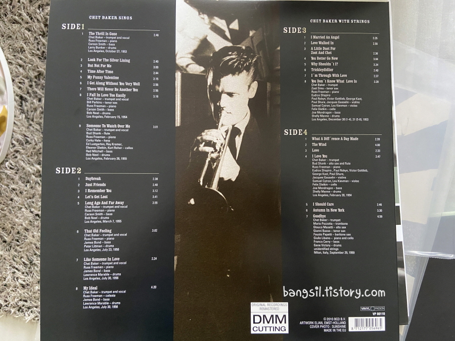 다음날 주문했던 LP 몇 장이 도착했어요. 재빨리 쳇 베이커부터 틀어봐요.