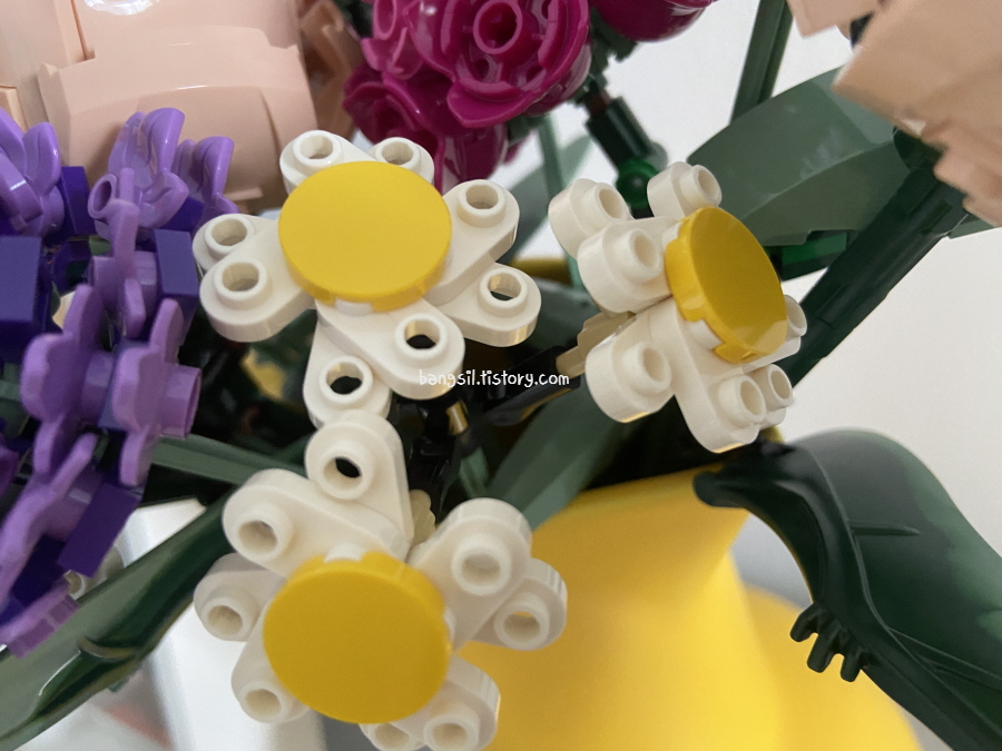 그다음은 데이지! 2묶음 들어있는데 한 묶음당 3송이씩 달려있어요. 심플해 보이지만 가장 레고스러운 꽃이었어요.