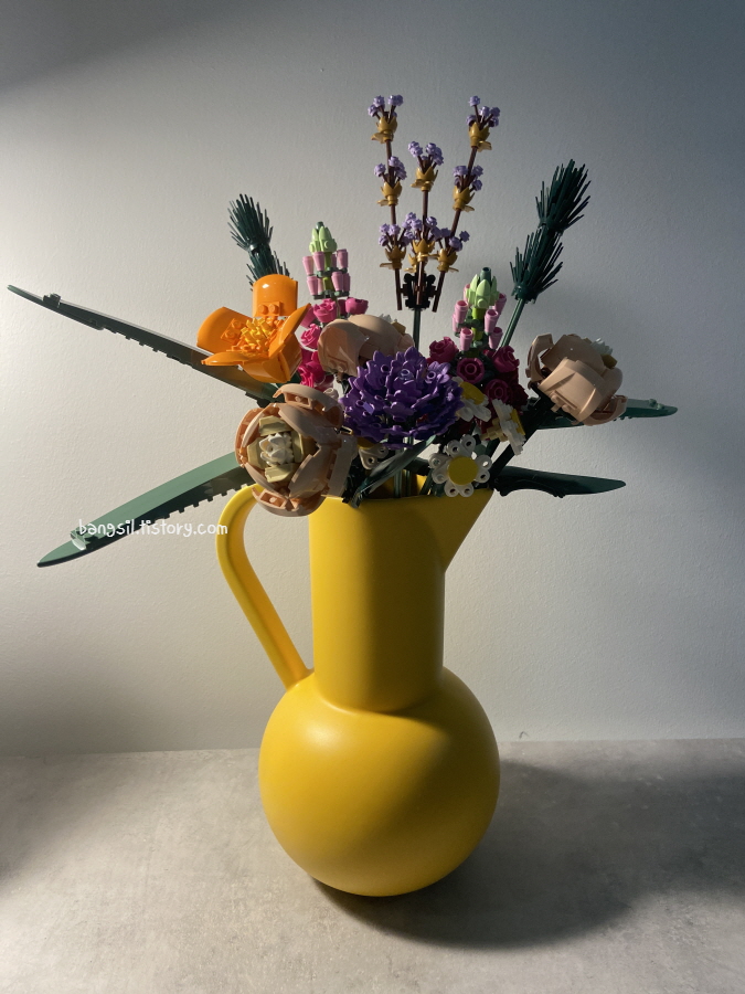 꽃다발을 완성하고 나면, 화병에 꽂아야 해요. 근데 화병은 들어있지 않기 때문에 화병은 따로 준비하셔야 해요. 사실 레고 꽃다발을 살까 말까 망설였는데요.
