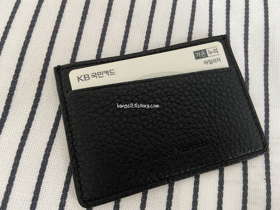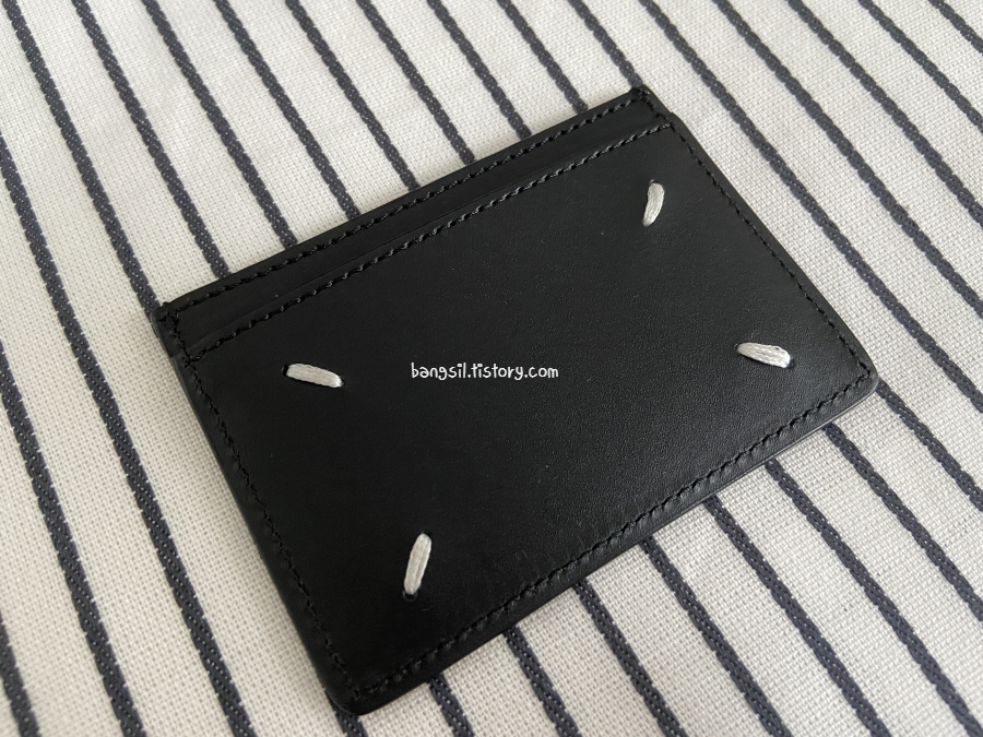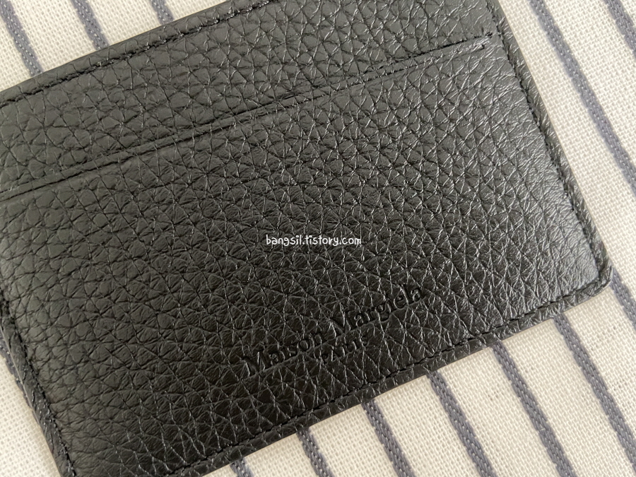 저는 메종 마르지엘라 카드지갑 중에서도 가장 인기 있는 일반 검은색 지갑을 구입했어요. 이 지갑은 부드러운 소가죽으로 만들어졌고 메종 마르지엘라의 시그니처 스티치가 있는 디자인이에요.