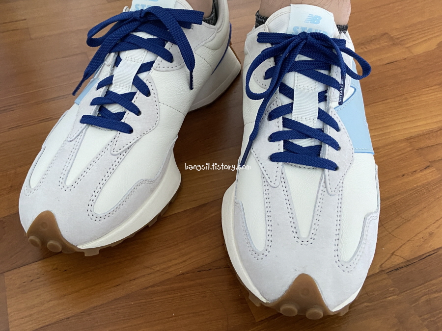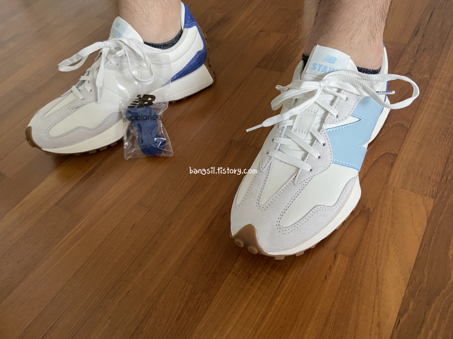 안녕하세요 방금 받자마자 쓰는 뉴발란스 스타우드 327 블루 씨 솔트 신상 MS327SZ 후기예요.