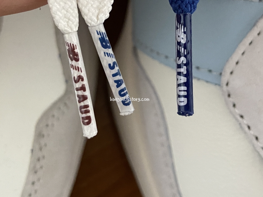 역시나 이번에도 운동화 끈의 디테일은 여전하네요. 운동화 끈 끝의 STAUD!