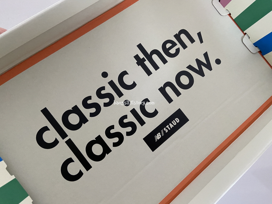 옆면의 N자 로고는 스카이 블루예요. 시원한 느낌을 주고 있어요. 그런데 버건디 스타우드는 N자 로고가 버건디 색으로 흰색과 명확하게 대비되어서 좀 더 포인트를 줬었는데요. 뭔가 살짝 아쉬워요.