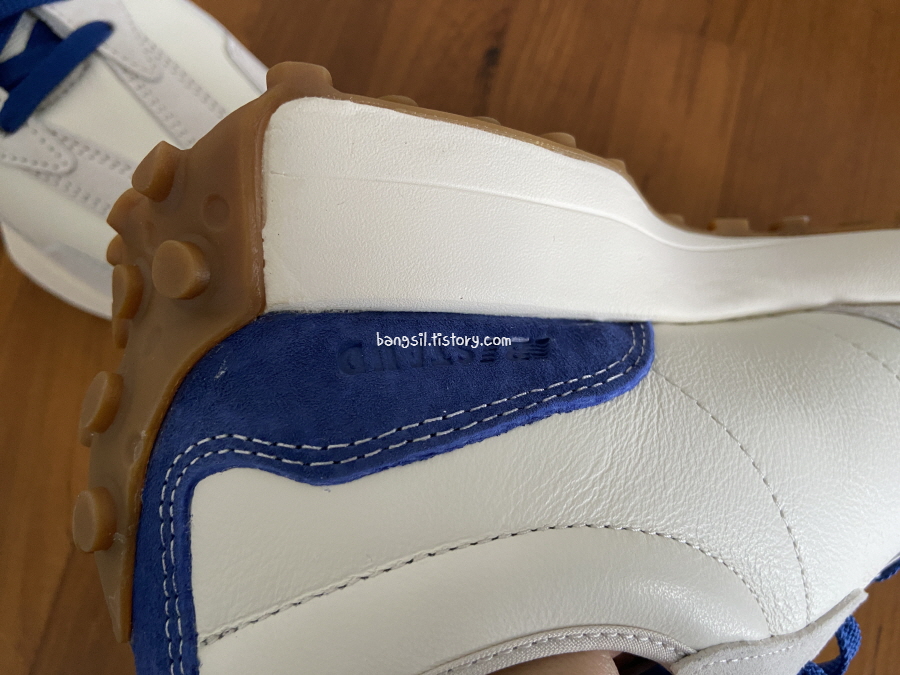 운동화 소재 자체가 가죽인데 블루 컬러로 나와서, 신발 자체는 여름 색깔인데 가죽이라 신기가 망설여져서 저번보다는 약간 상품이 많이 남아있는 느낌이에요. 그런데 이번 스타우드 327 가죽이 약간 달라요! 그건 밑에서 자세히 말씀드릴게요.
