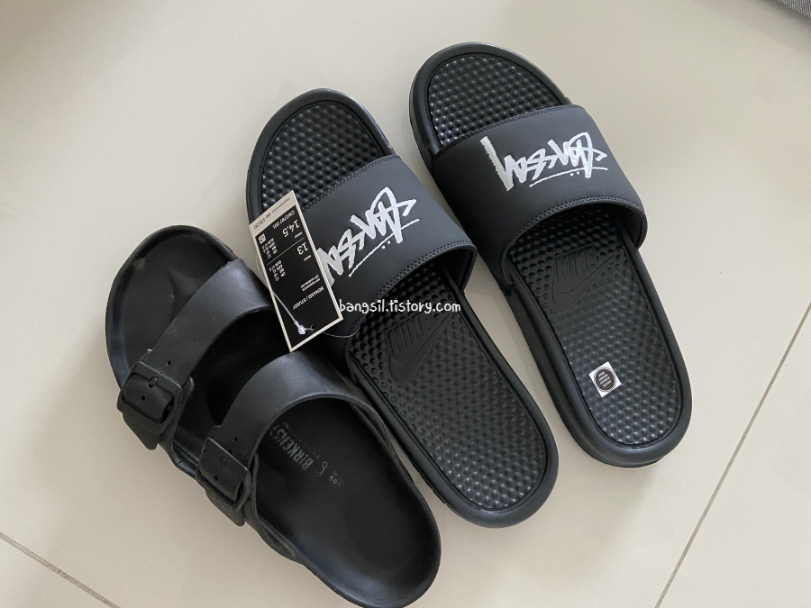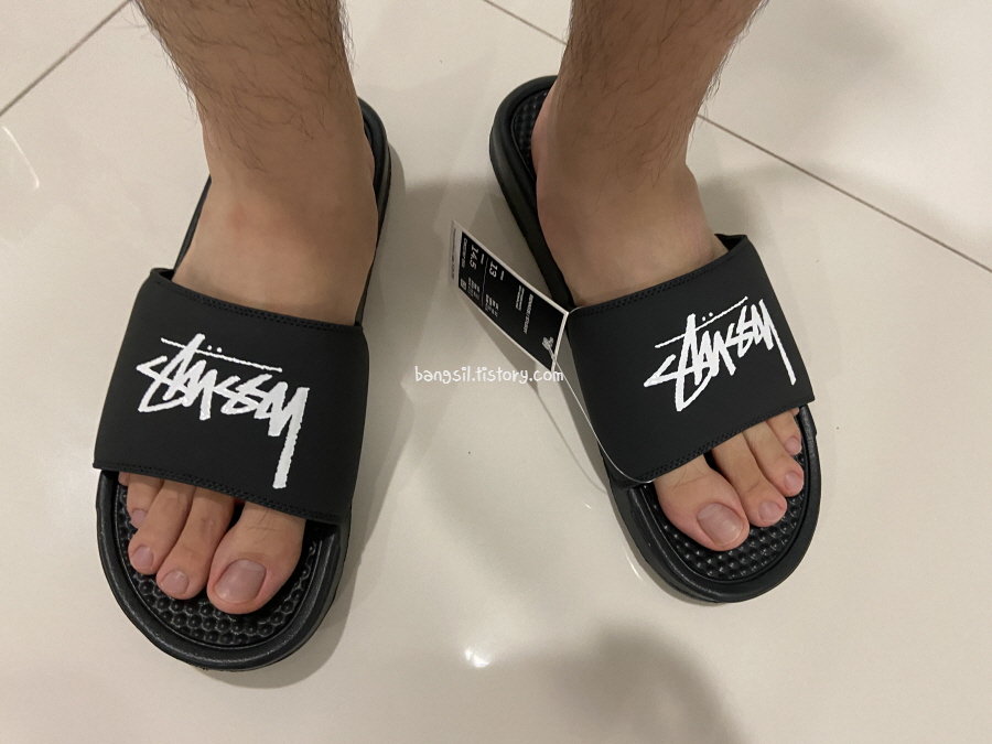 얼마 전에 남편이 작년에 못 사서 아쉬웠던 나이키 스투시 슬리퍼를 구입해줬어요. 작년에 나오자마자 솔드 아웃되었었는데 사이즈 맞추기가 정말 어렵다고 그래서 이번에 살 때도 고민이 참 많았거든요.
