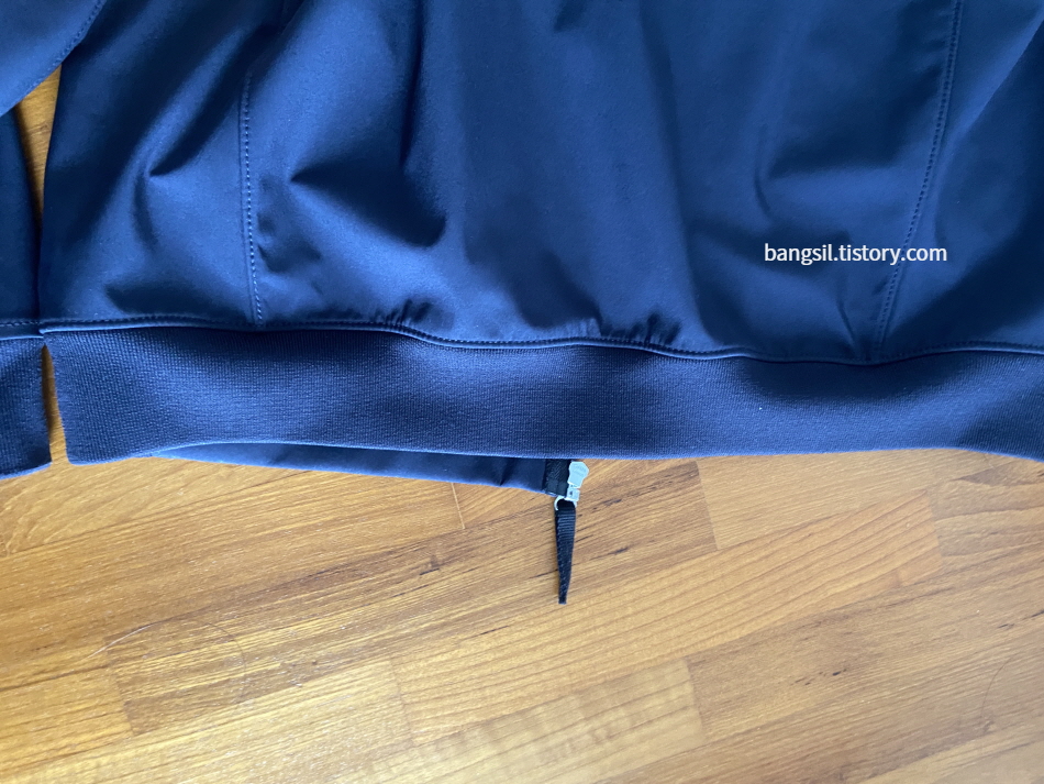 밑단은 약간의 시보리 밴딩이 되어 있다. 기장이 살짝 길다고 느낄 수 있지만 밴딩 때문에 안으로 고정시켜주는 편.