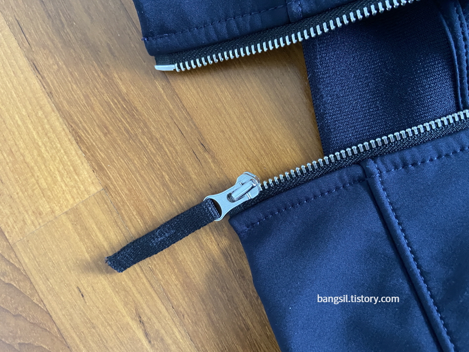 지퍼는 은색 지퍼 스타일이다. 주머니 지퍼는 안 보이도록 시접이 되어 있다. 하지만 지퍼는 각 시즌별로 다르게 나오는 거 같아서 사는 시점에 한번 더 확인해보시길 바란다.