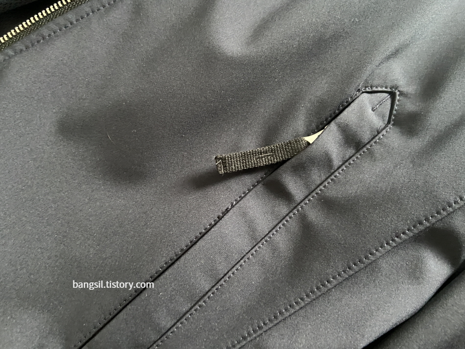안에 택은 Light Soft Shell이라고 적혀 있다. SS 제품은 안감이 통기성이 좋게 되어 있다. FW 시즌은 안감이 좀 더 따뜻하게 되어 있는 편이라고 한다.