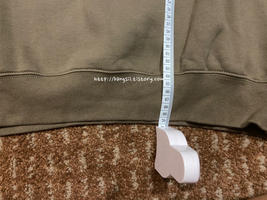 제가 입었을 때 엉덩이를 충분히 가리는 기장이었어요. 활동하기에 부담이 없는 기장입니다. 워낙에 오버핏으로 나왔기 때문에 여자분들이 입으실 때는 개인적인 취향이지만 XXS로 추천드려요.