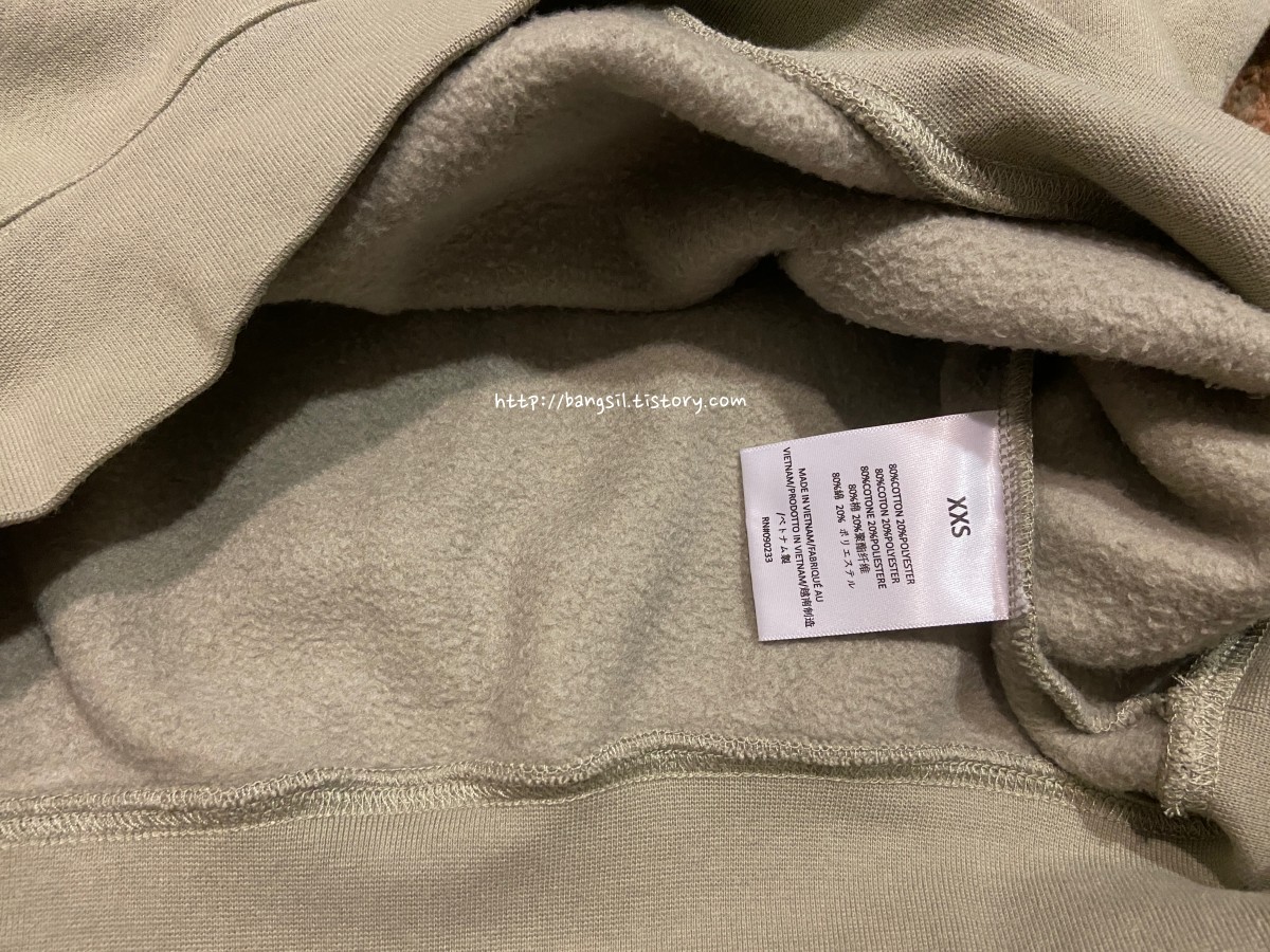 3. 에센셜 맨투맨 실착 및 안감 기모, 장단점, 기타