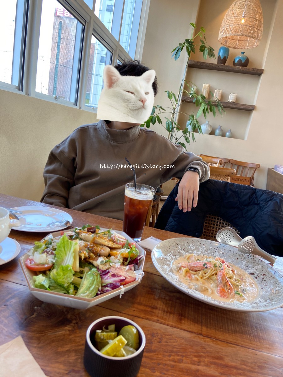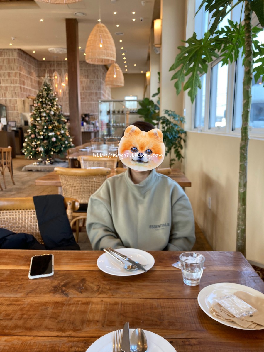 남편과 브런치 먹으러 갔던 날 찍은 사진이에요. 오버핏이긴 하죠? 근데 이게 제일 작은 사이즈!입니다.