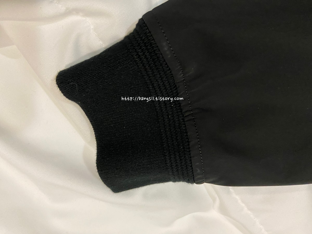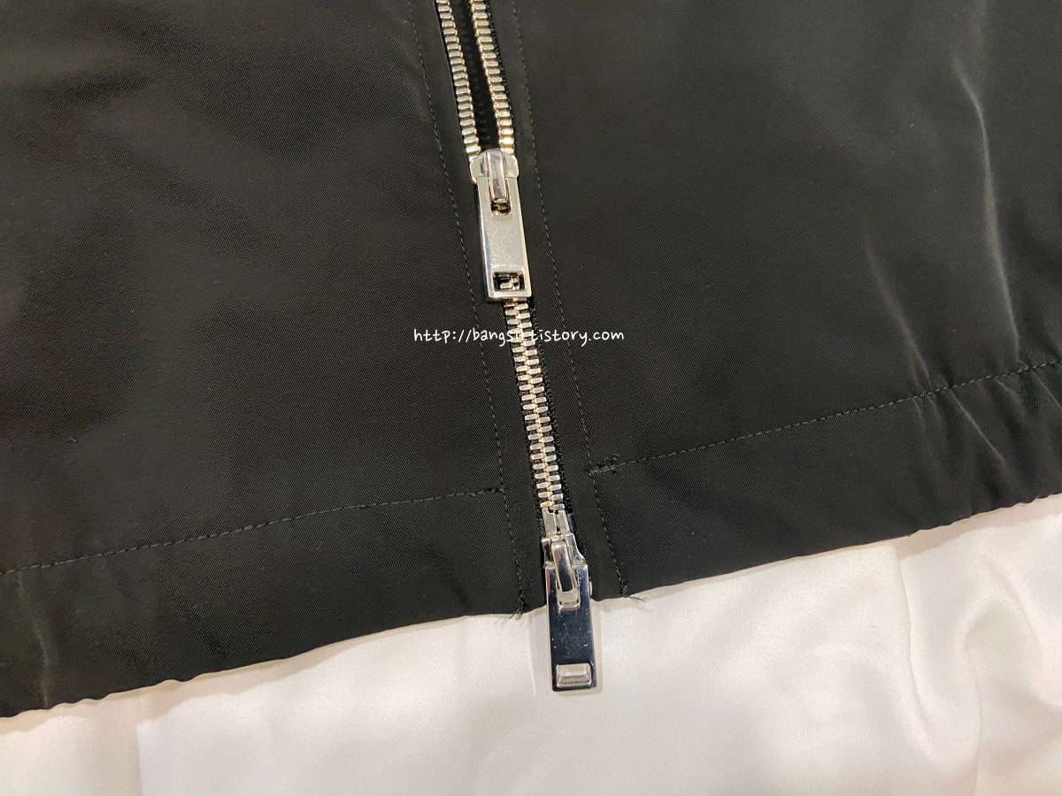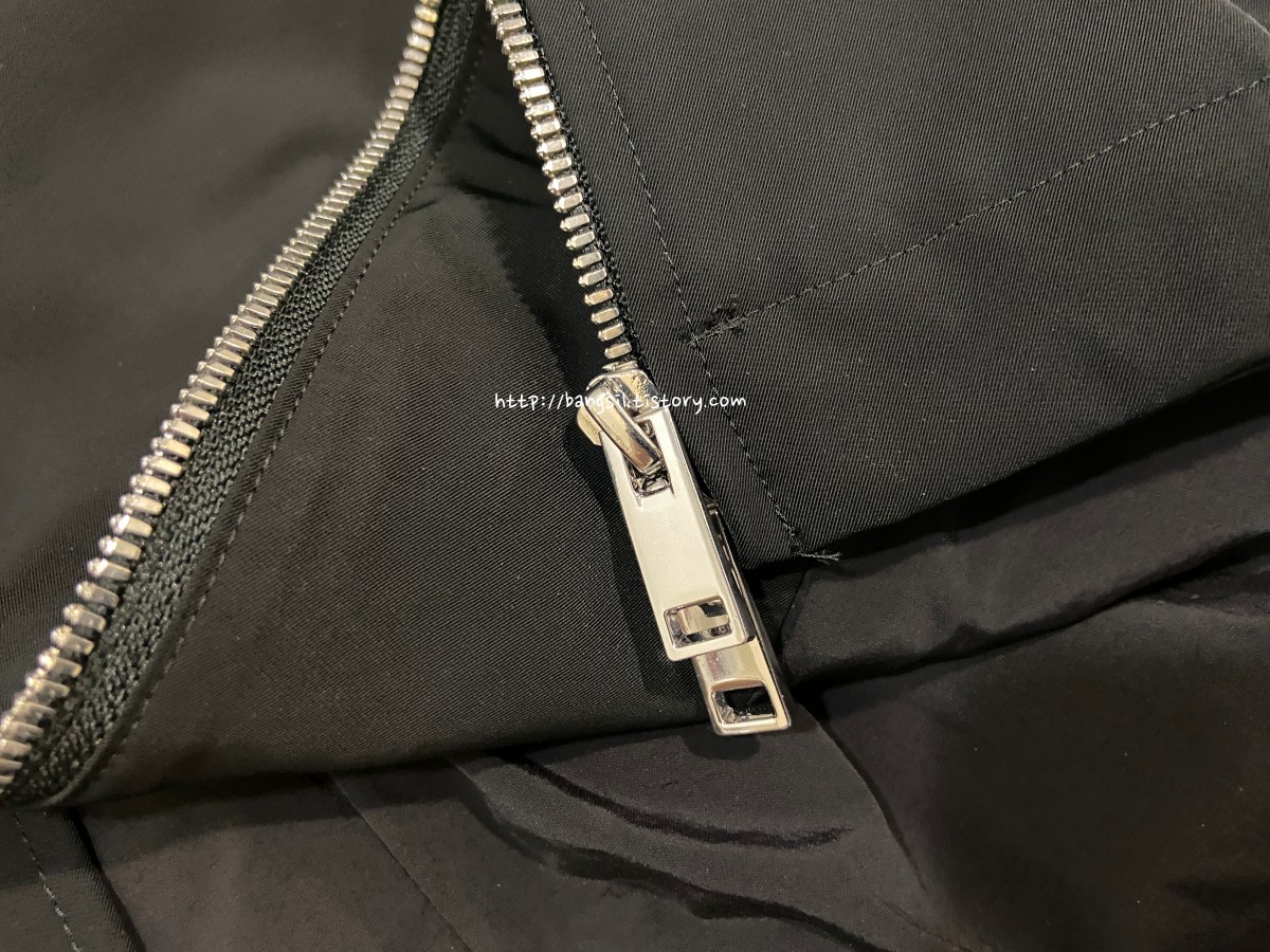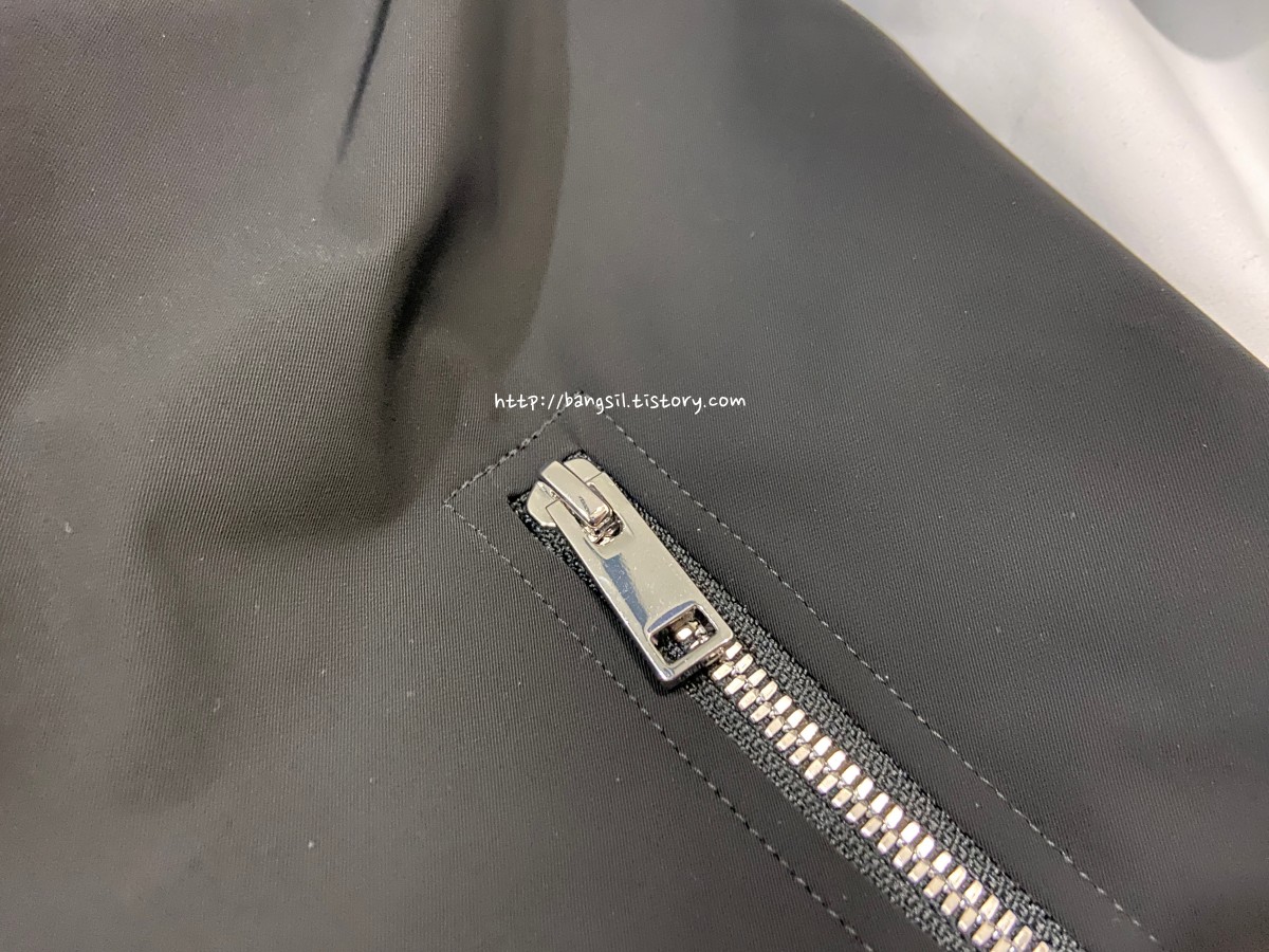 소매 부분 지퍼는 은색 지퍼입니다. 프라다의 지퍼를 연상시키는 지퍼예요. 고급스럽고 무척 부드럽게 움직이는 지퍼입니다.