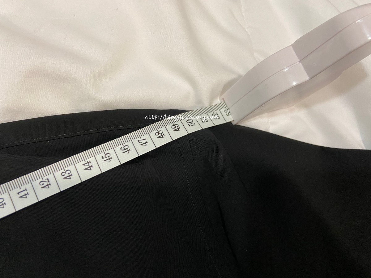 가슴둘레는 단면 54cm 정도 나왔고요. 어깨는 52cm 정도인데 약간 경계가 없기 때문에 가슴둘레보다 작게 나오는 것 같아요.
