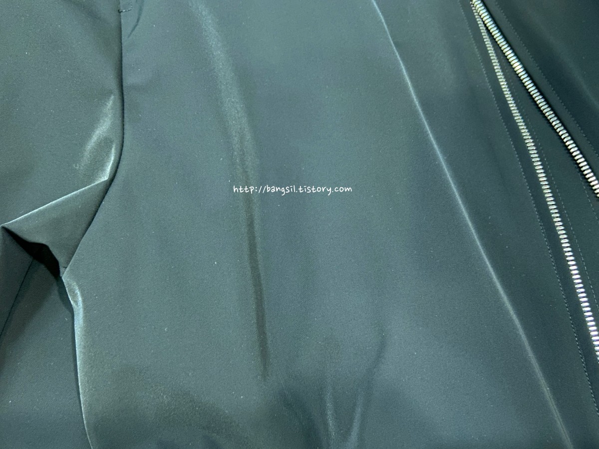 우선 띠어리 자켓은 제가 처음 사봤는데, 너무 고급스러운 소재에 놀랬어요. 일반 비닐 같은 소재 절대 아니고요. 약간 메탈기가 있긴 한데 스톤 아일랜드랑 또 다른 느낌의 깔끔한 느낌의 소재입니다.