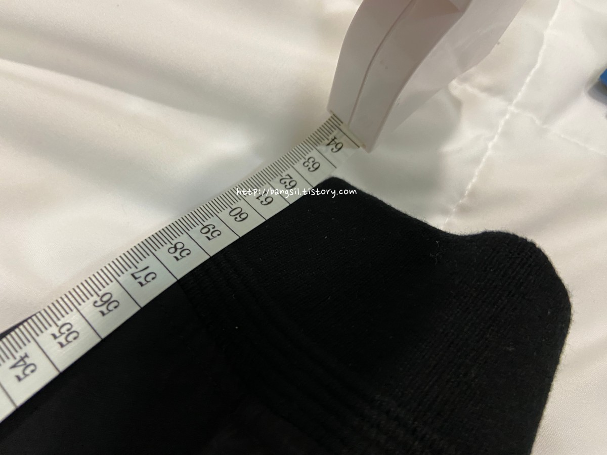 그리고, 이 스트링이 있는 부분의 밑단은 고무줄로 되어 있어요. 그래서 더욱 핏이 예쁘게 보이는 것 같았어요.