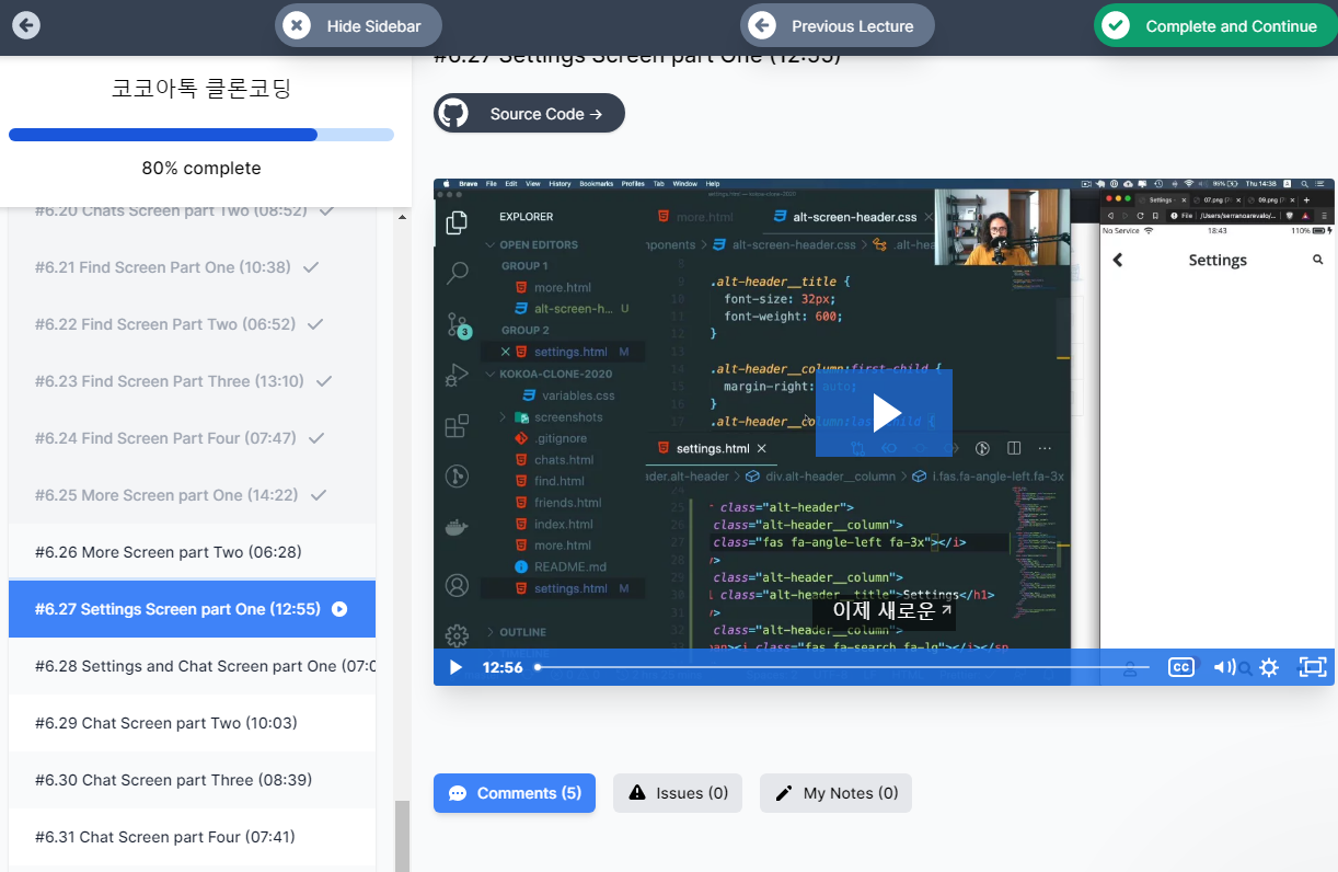수업은 영어로 진행되지만, 100% 한글자막이 있다. 왜냐하면, 니콜라스(이하 니코)의 아내분이 ‘노마드코더’를 같이 운영하시기 때문이다. 아내분이 직접 자막을 넣으셔서 그런지 자막도 너무 찰지고 니코의 말투 그대로 자막으로 오고 있는 느낌이다. 사실 자막 없어도 영어가 잘 들리는 편이라서 크게 문제가 되지 않을 거지만, 수업에 집중하려면 자막이 있는 편이 훨씬 편하긴 하다.