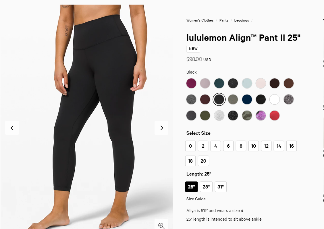 우선 제가 가지고 있는 레깅스는 룰루레몬 레깅스 중에서도 얼라인 레깅스입니다. 룰루레몬에서 여러가지 라인과 소재의 레깅스를 내고 있지만, 제가 하는 운동은 요가, 필라테스에 집중되어 있고 달리기나 걷기 운동을 할 때는 반바지를 입기 때문에 움직임이 편한 얼라인을 입고 있어요.