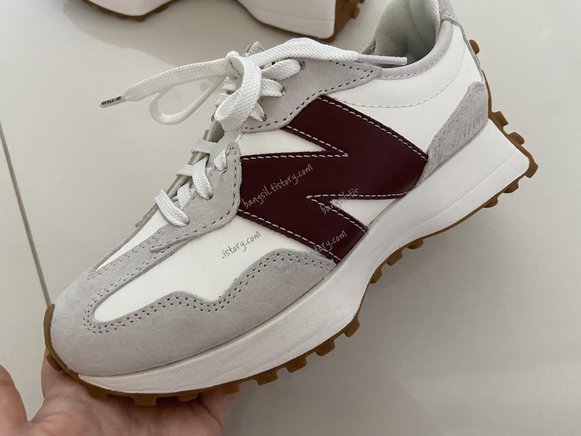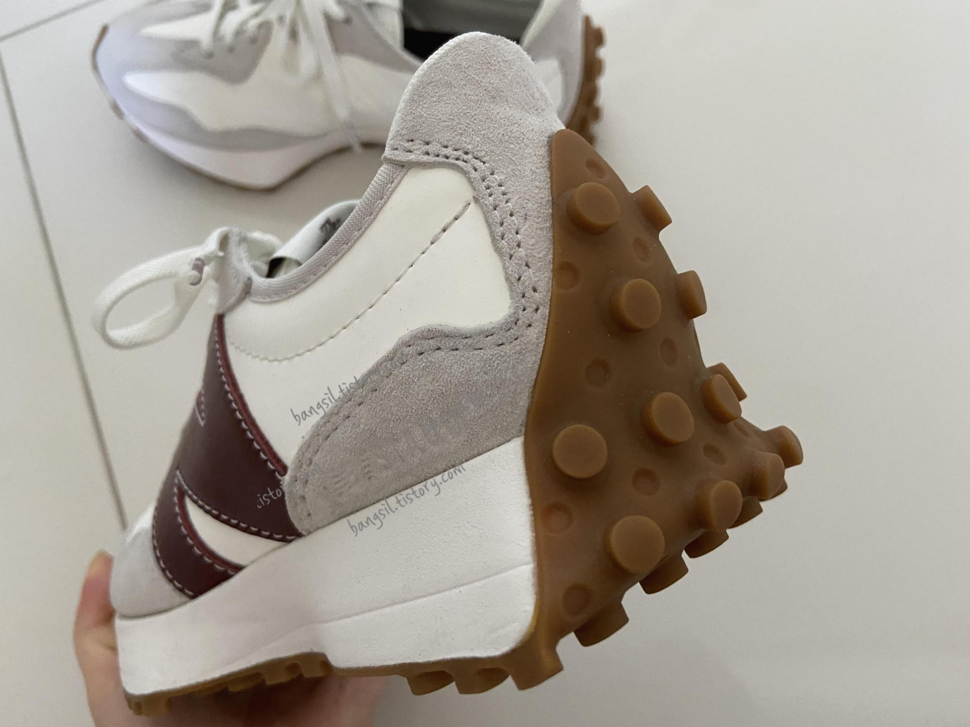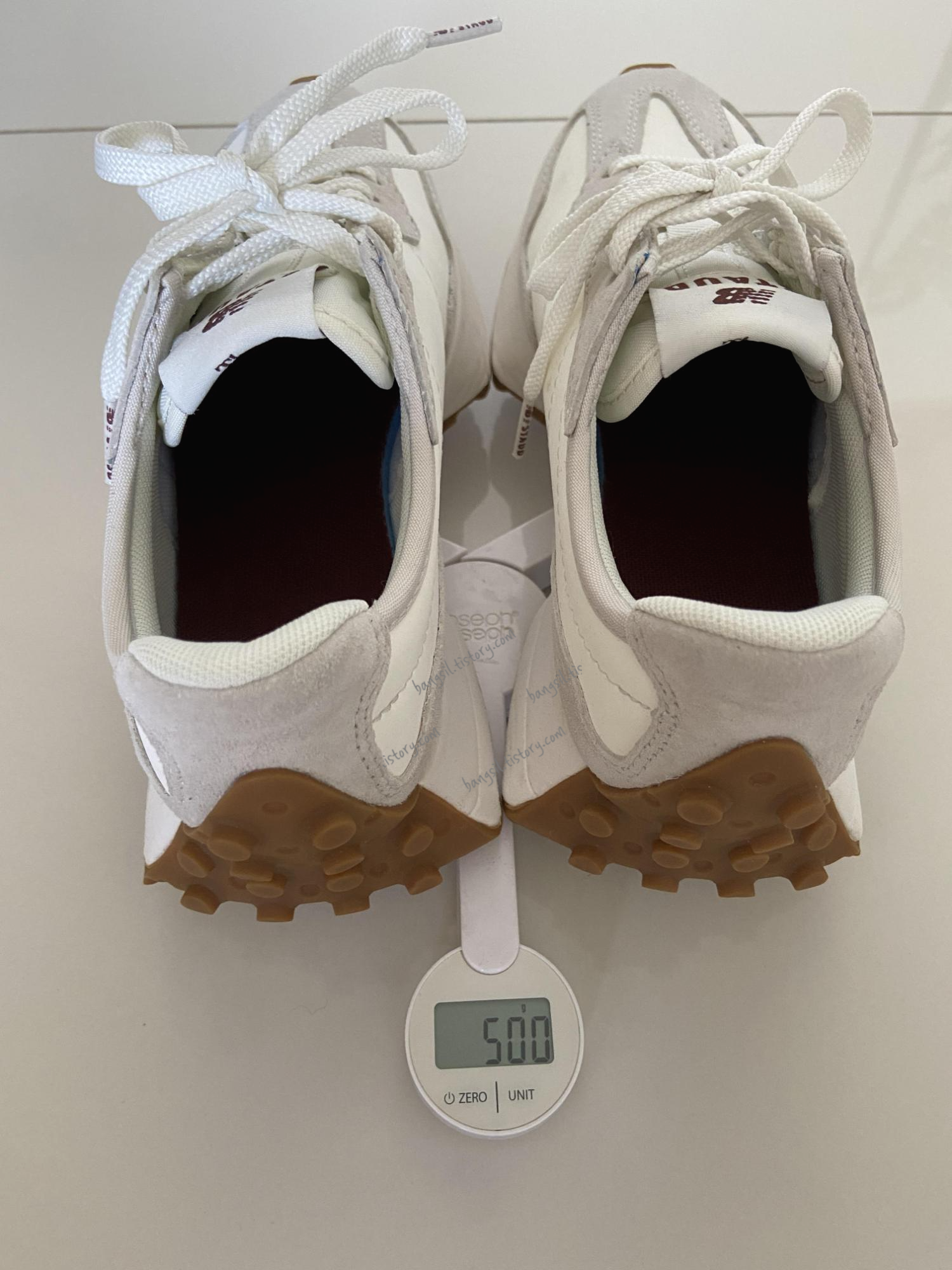 뉴발란스 327 시리즈의 특징인 운동화 굽을 볼게요. 고무색이 너무 예쁘죠?