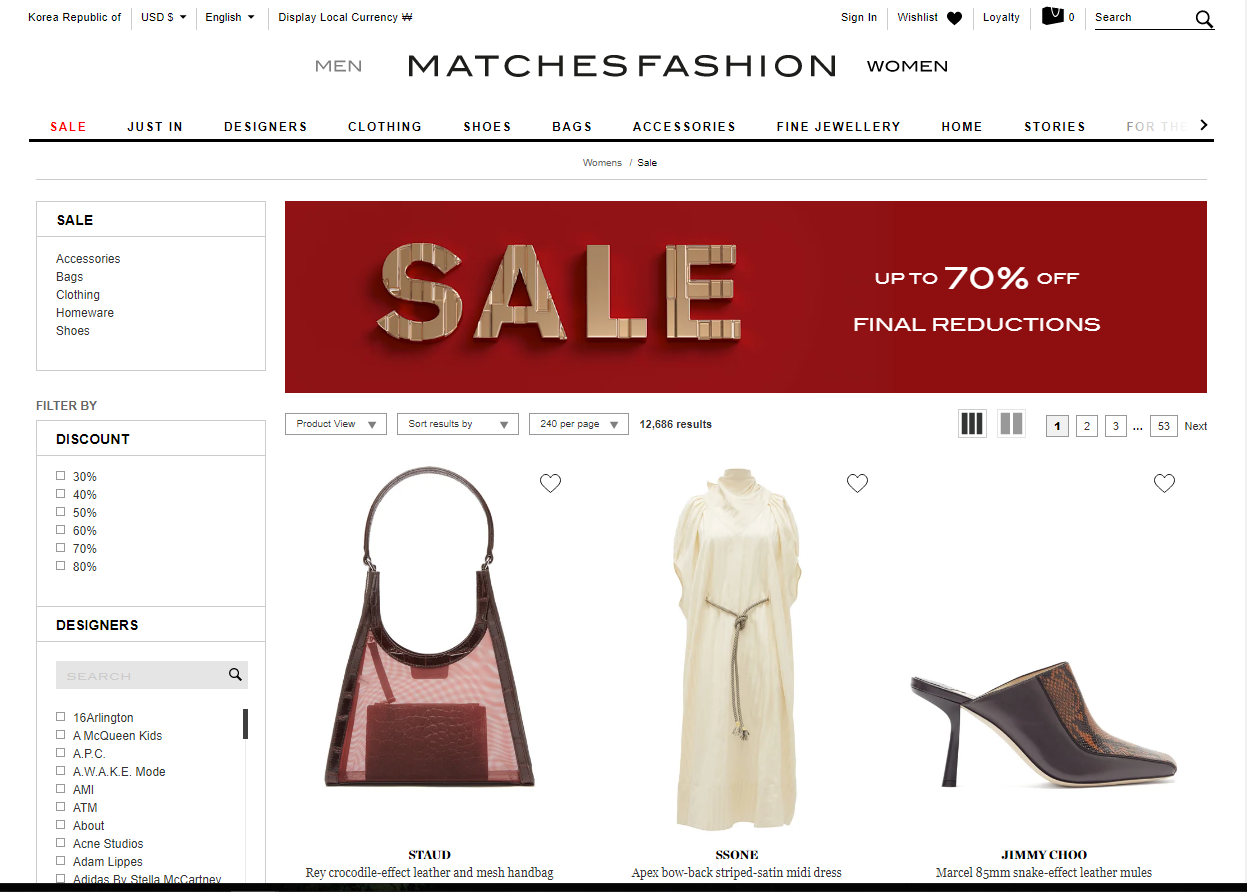 첫번째는 Matchesfasion이에요. www.matchesfashion.com/en-kr/